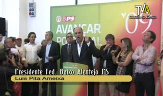 Foi o deputado Luís Pita Ameixa quem discursou em primeiro lugar. O presidente da Federação do Baixo Alentejo do Partido Socialista e cabeça de lista pelo distrito começou o seu discurso com fortes críticas ao deputado José Soeiro e aos “maus resultados” da CDU. Também a cabeça de lista do PSD constou das críticas do deputado socialista, que mencionou a recusa por parte de Manuela Ferreira Leite em falar aos jornalistas aquando da sua última deslocação a Beja. Luís Pita Ameixa reforçou a confiança e os progressos do “mandato de ouro” do PS.